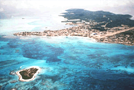 Blick über die Cocoplumb Bay zu Acuario und Haynes Cay