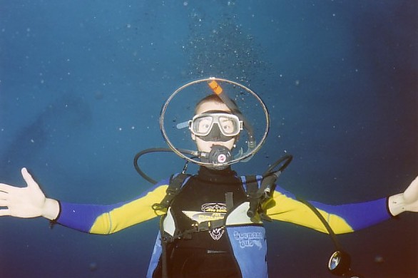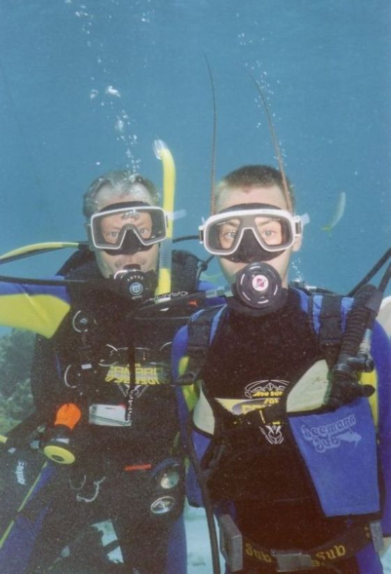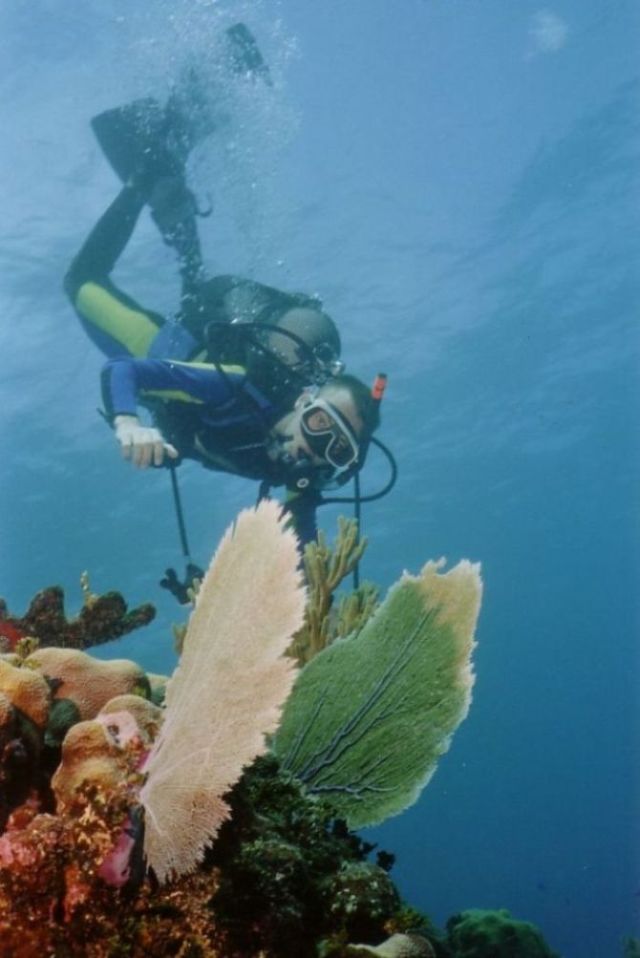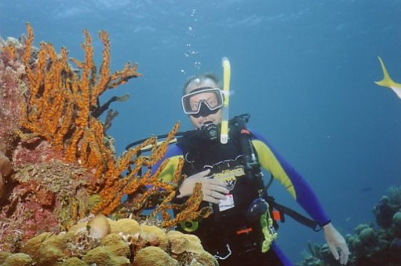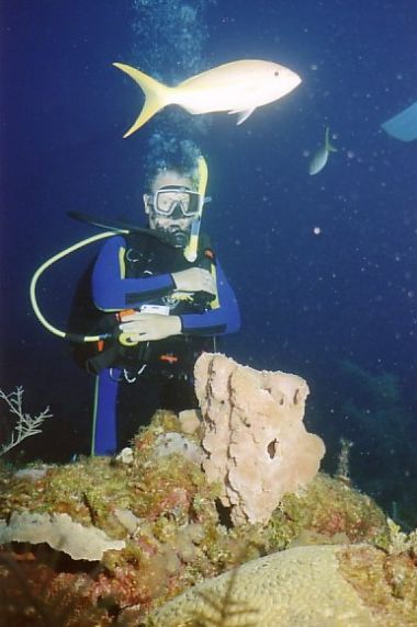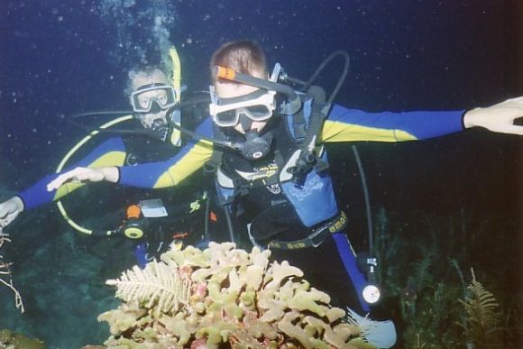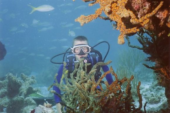 Adrian beim Beobachten eines Korallenstocks |