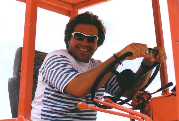 Carmenīs Mann fährt den Traktor zur Playa Paraiso