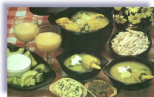 paramunas, disueltas). Se sacan las pechugas (o las presas) y la cebolla. Al caldo se le agregan las mazorcas, que