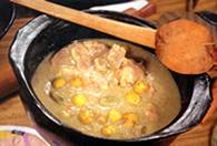 Se sofríen las carnes y las papas hasta dorar, se le agrega la cebolla, los garbanzos y el agua con mucho
