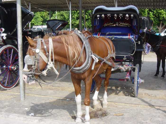 Pferdekutsche auf dem Parkplatz |