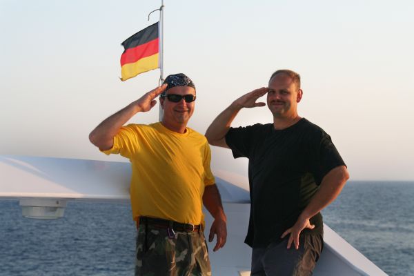 Thomas und Norbert grüßen die deutsche Fahne |