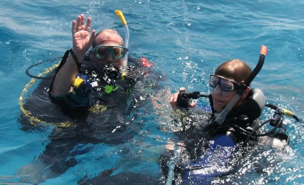 Winfried und Tobias vor dem Abtauchen |