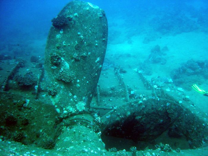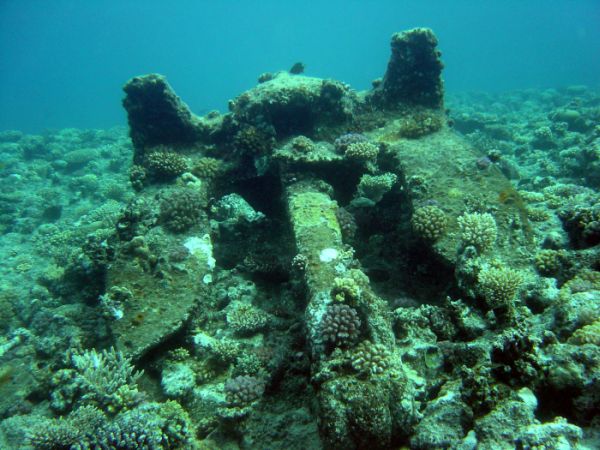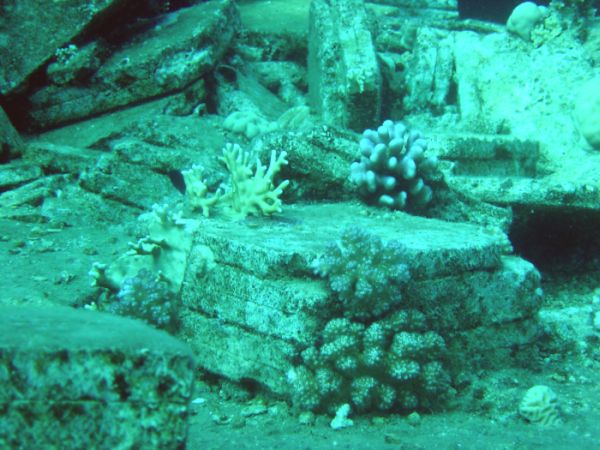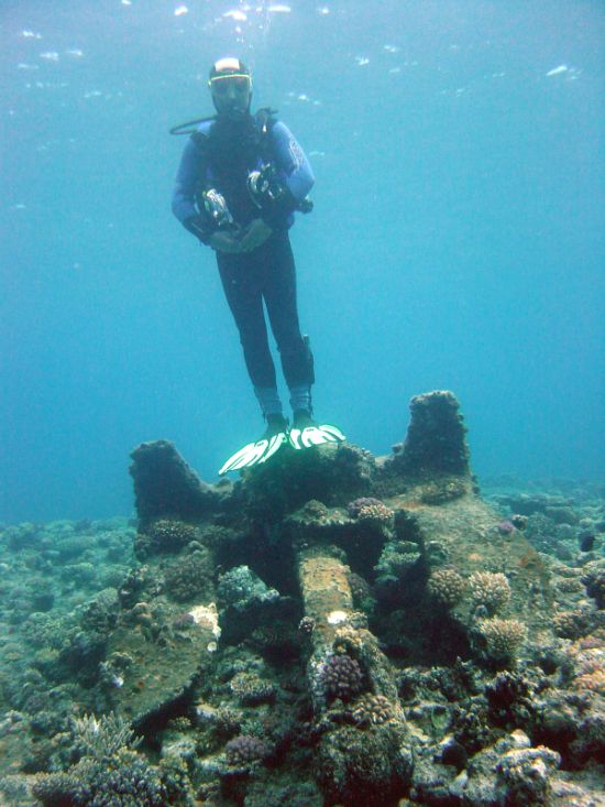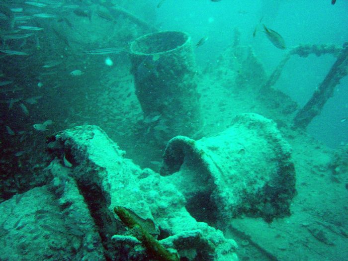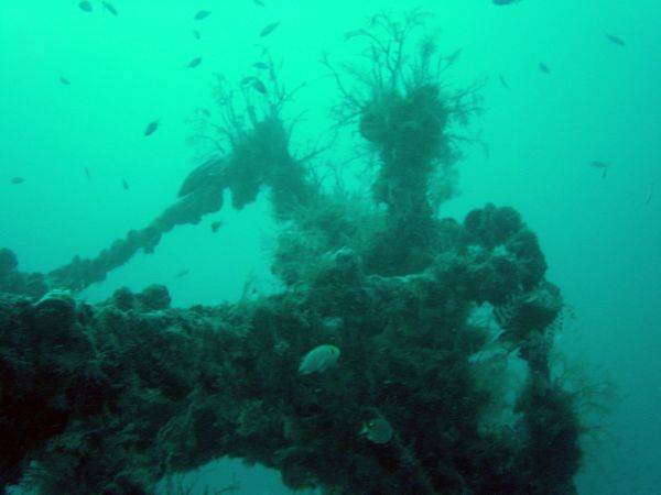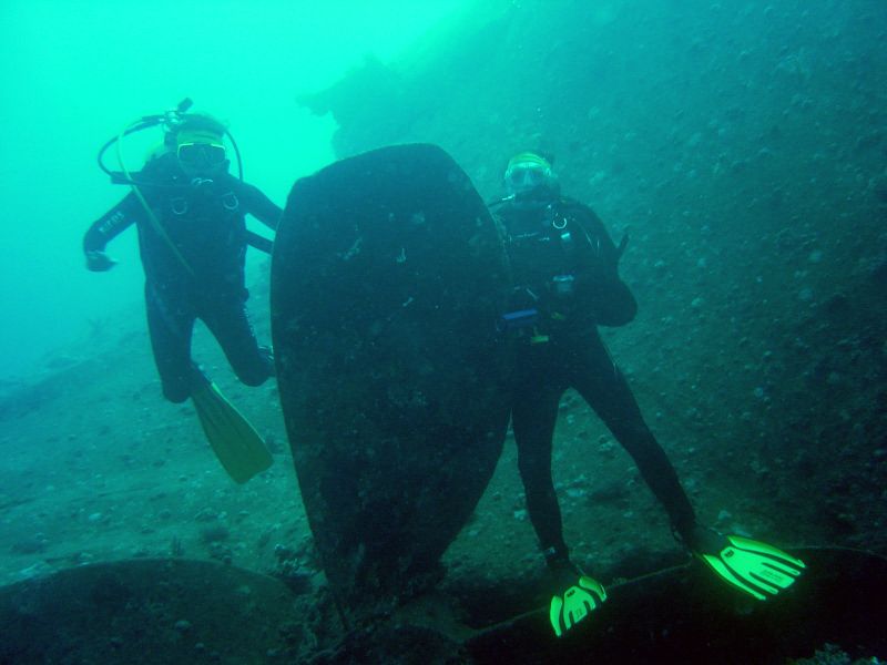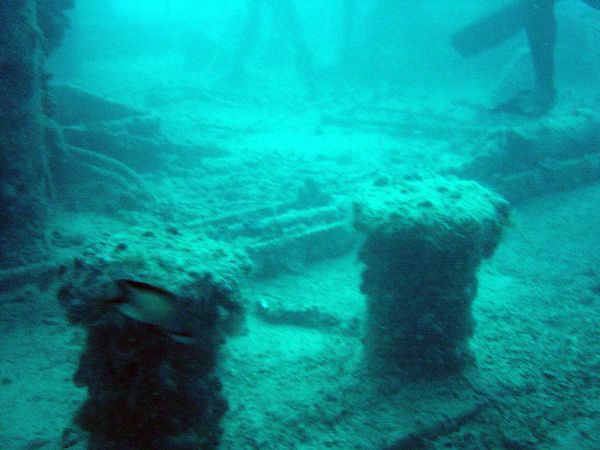 Im Hintergrund Wrackteile der Kimon M.