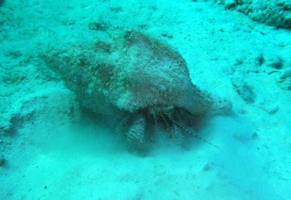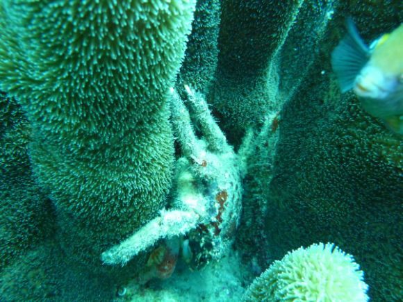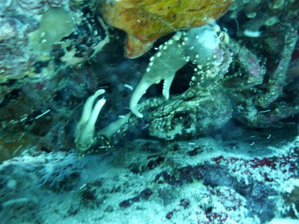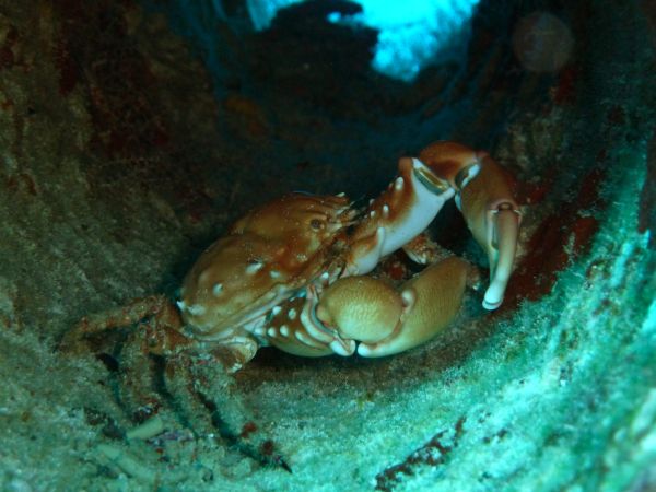 Krabbe im Fallrohr der Ankertrosse |