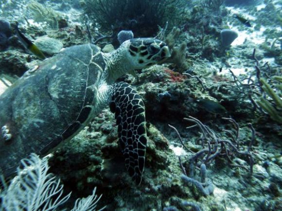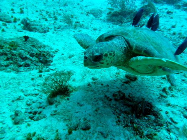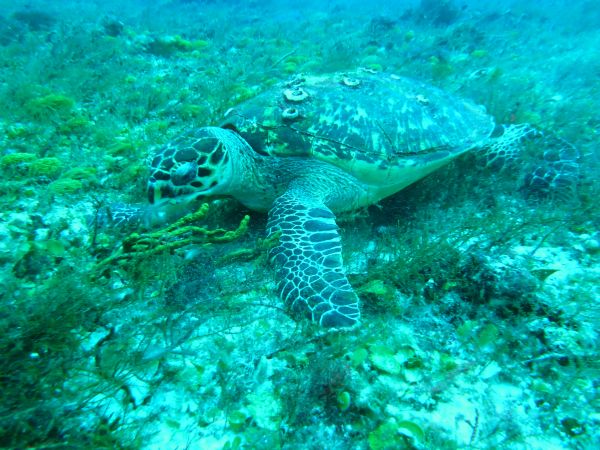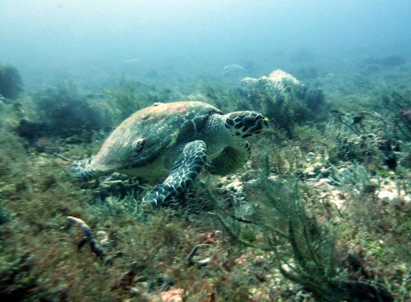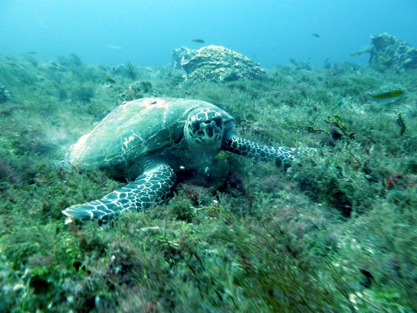 Blick nach unten, eine Schildkröte macht