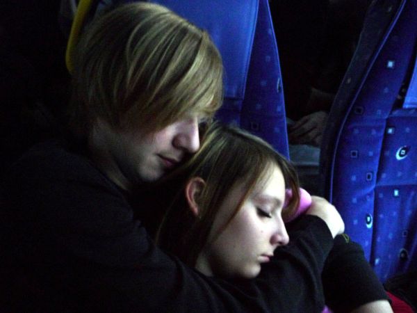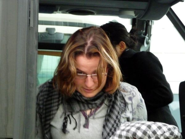 Anne steigt aus dem Bus