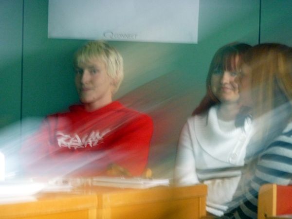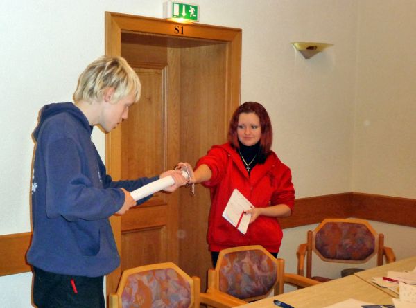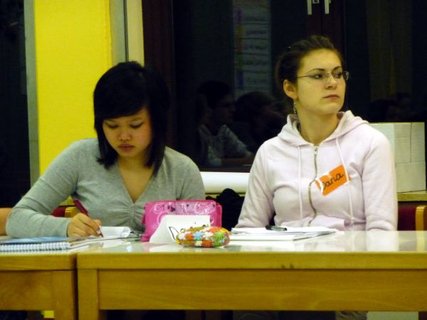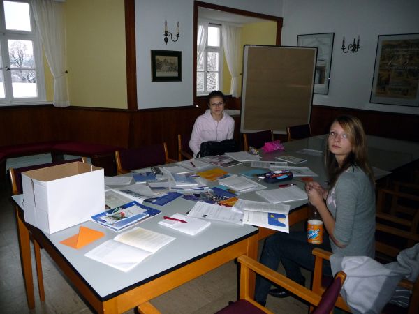 Daria und Elén bei der Vorbereitung ihrer Präsentation