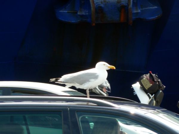 Möwe auf dem heißen Autodach